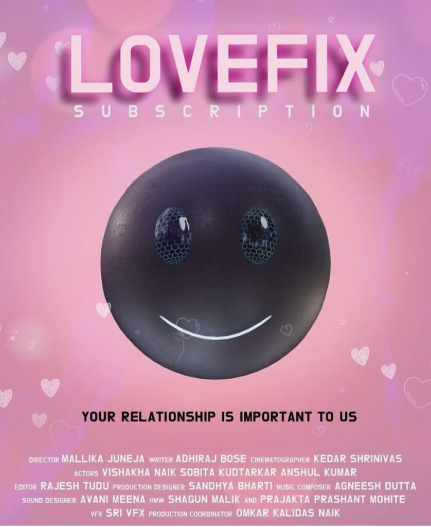 Lovefix Subscription 2024 Directed by Mallika Juneja Role: Supporting actress Created as part of the 75 Creative Minds of Tomorrow project at the International Film Festival of India 2024.